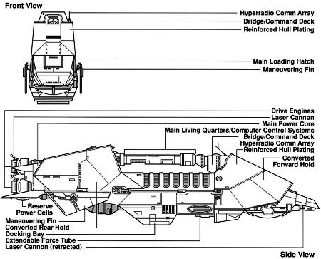 Оснащение - Репульсорный транспорт, истребитель или шаттл (по выбору, размещается в грузовом отсеке)