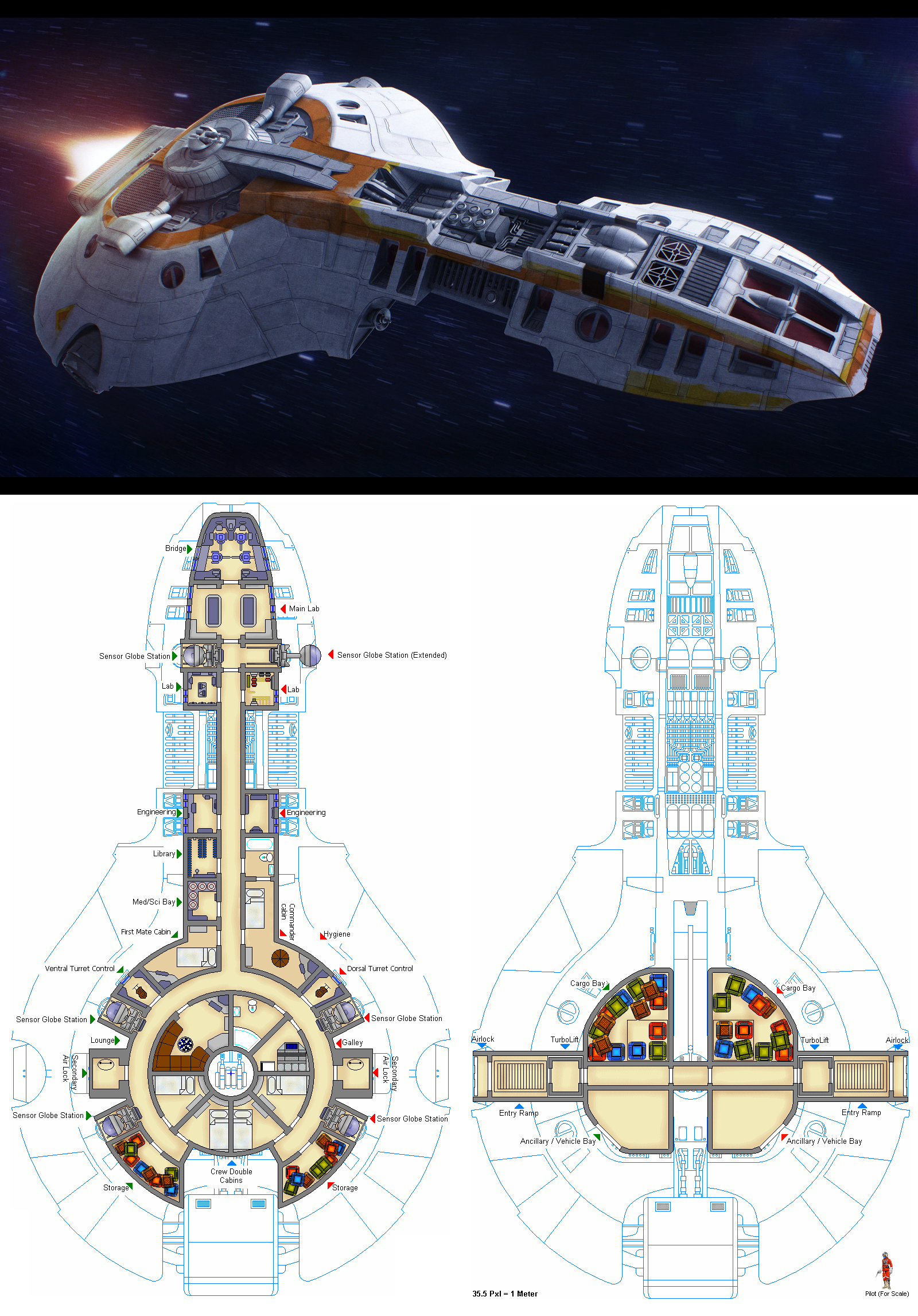 Тем не менее, мастерская включала в себя полный набор техники для ремонта всех видов звездолетов и их модернизации, а так же несколько складов с запасными частями, разбросанных по территории ангара.